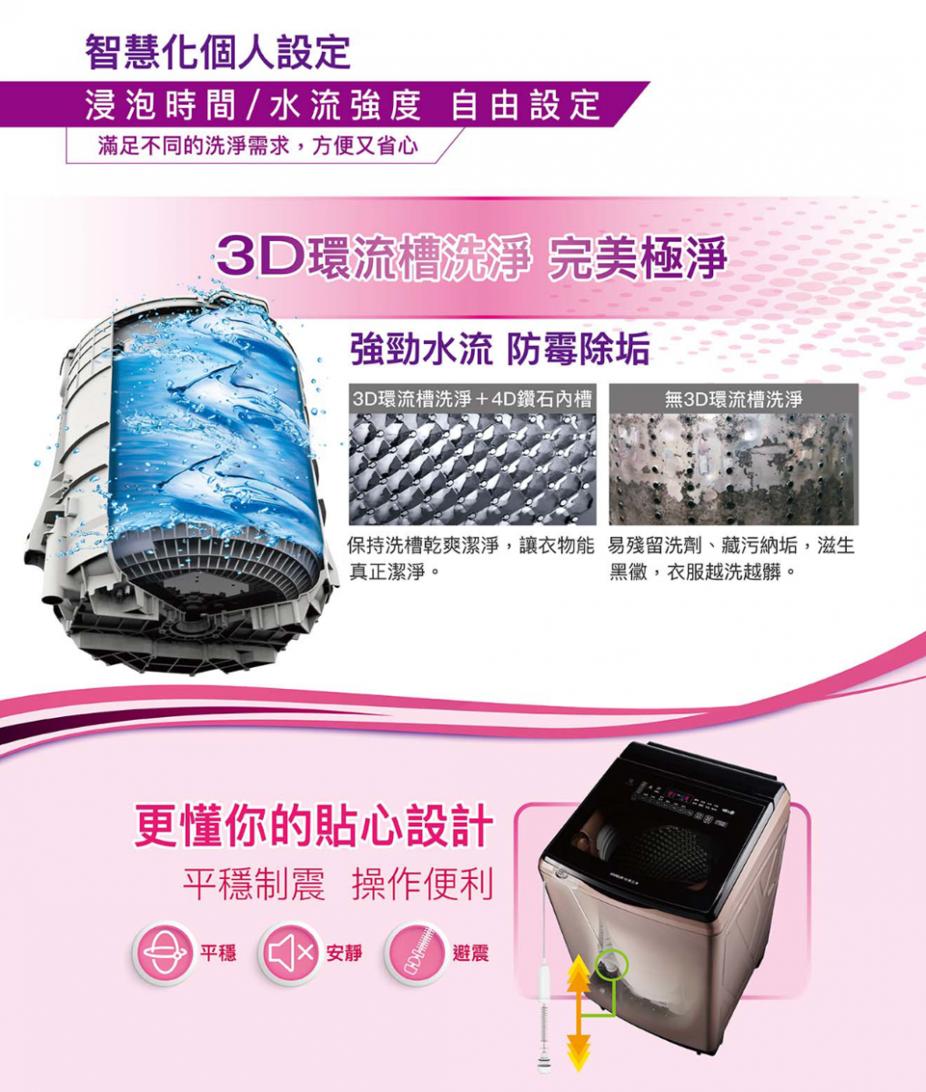 洗衣行程選擇|標準、污髒、快速、記憶、毛毯、柔洗、護嬰、槽洗淨