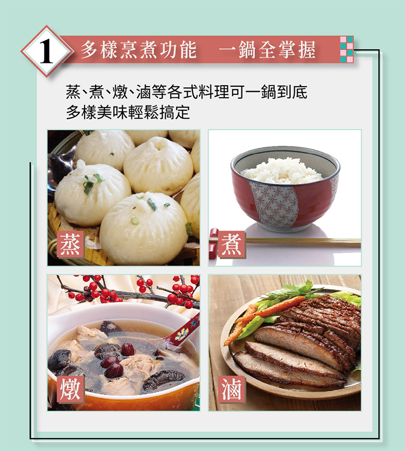‧ 煮飯、粥、滷、蒸等功能樣樣齊全