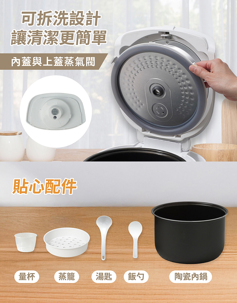 ‧ 可拆洗內蓋、蒸氣閥清潔方便
