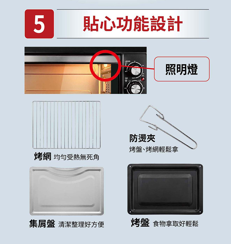 ‧ 內崁式照明燈方便烘烤