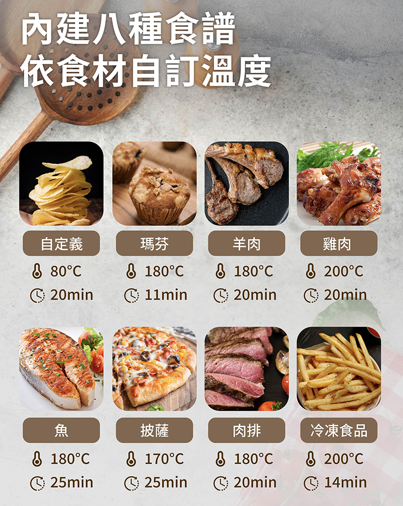 ‧ 內建8種食譜