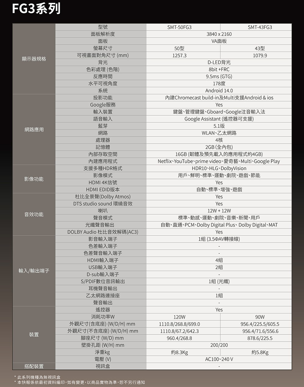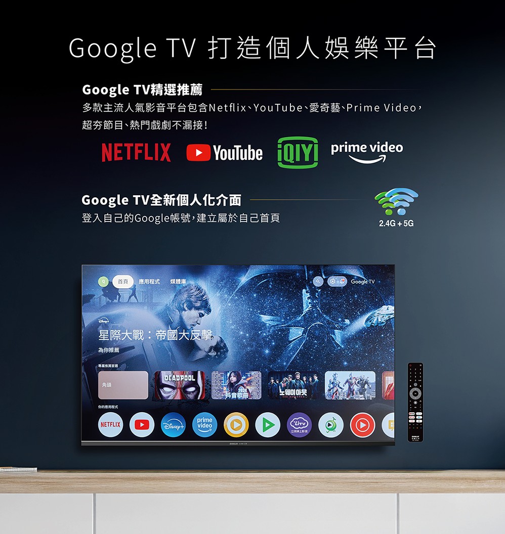| 內建應用程式 | Netflix、YouTube、prime video、愛奇藝、Multi、Google Play | |