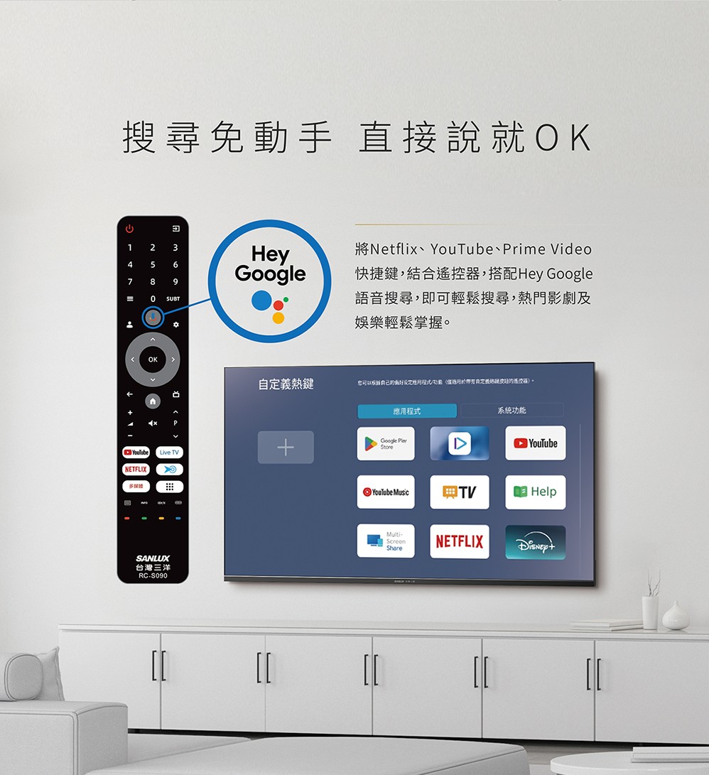 | 語音輸入 | Google Assistant (遙控器可支援) | |