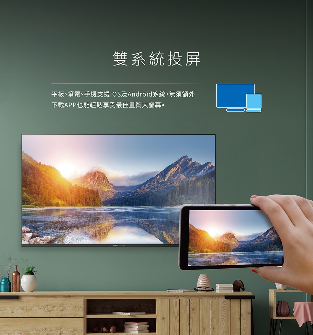 | 投影功能 | 內建Chromecast build-in及Multi支援Android & ios | |
