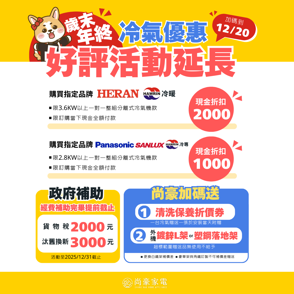 ▍ 〈歲末年終冷氣優惠〉加開延長!
