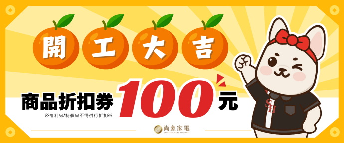 此券可用於活動期間內至尚豪家電門市,購買家電折抵 100 元