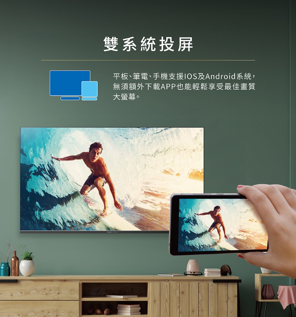 | 投影功能 | 內建Chromecast build-in及Multi支援Android & ios | |