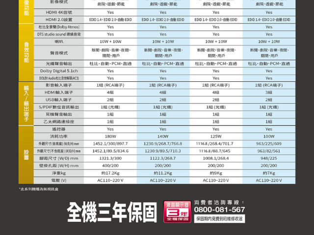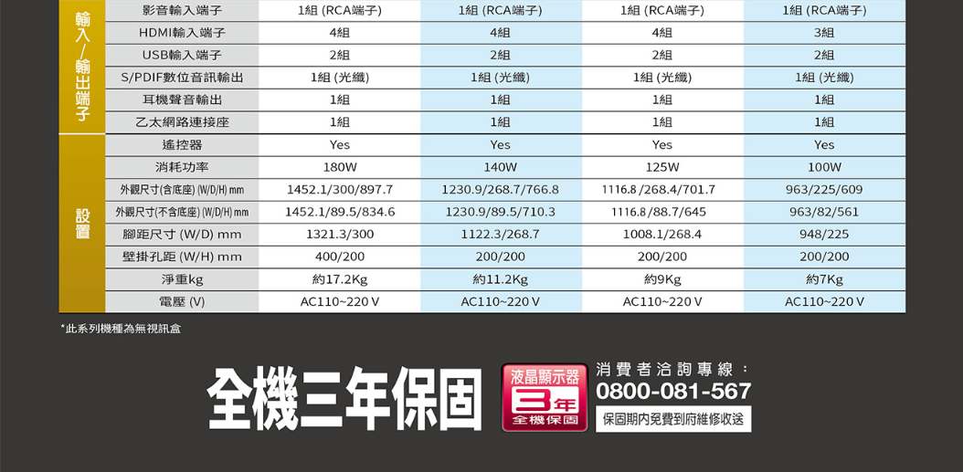 外觀尺寸(W/D/H)(含底座) mm|1116.8/268.4/701.7