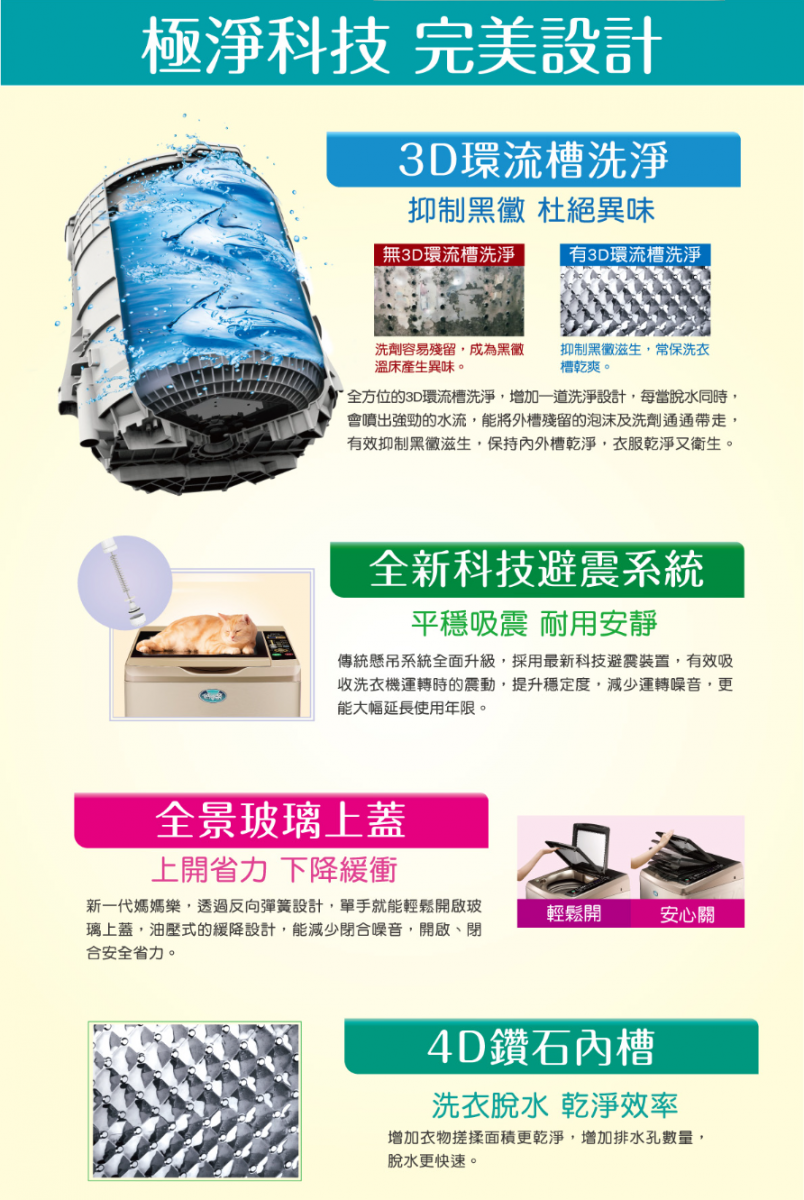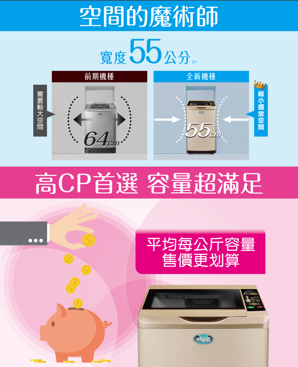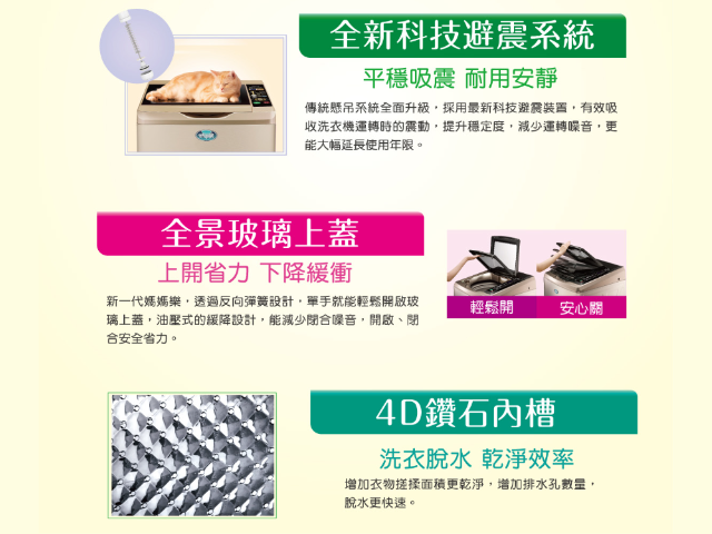 洗衣行程選擇|標準、污髒、快速、記憶、毛毯、柔洗、護嬰、槽洗淨