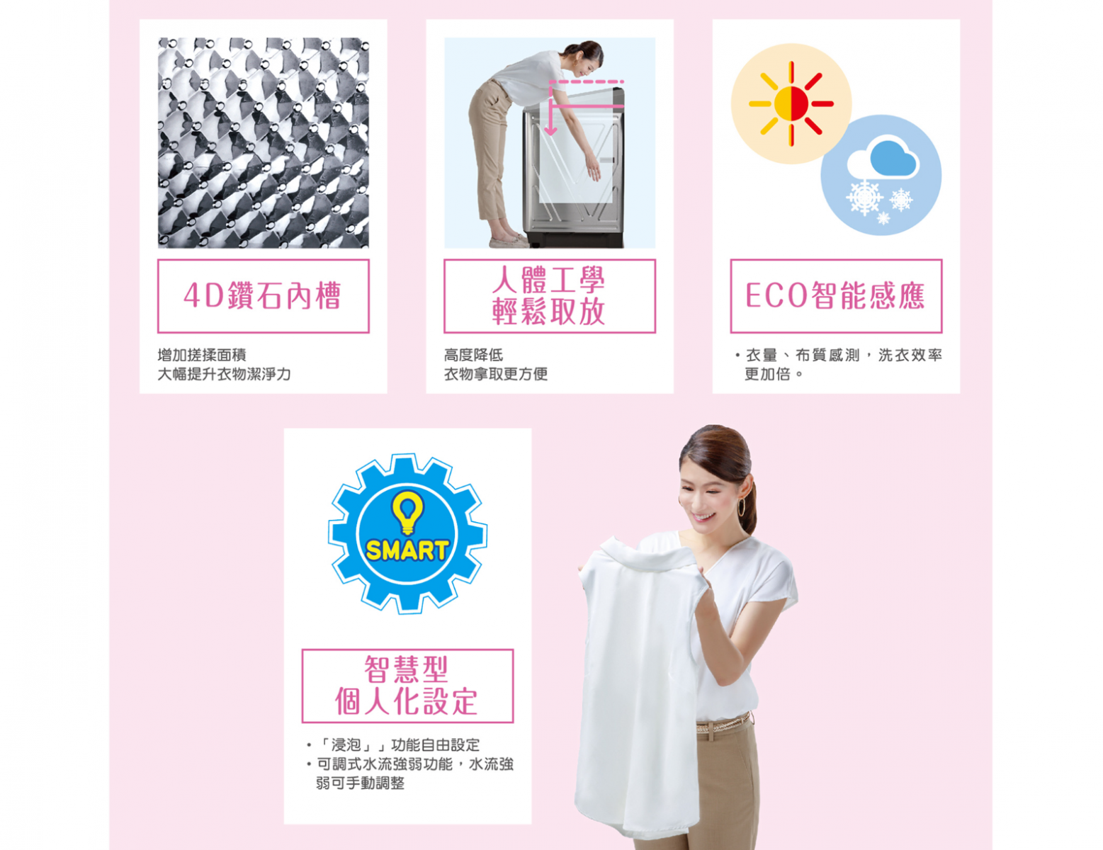 洗衣行程選擇|標準、污髒、快速、記憶、毛毯、柔洗、護嬰、槽洗淨