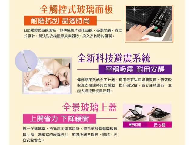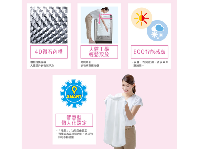 洗衣行程選擇|標準、污髒、快速、記憶、毛毯、柔洗、護嬰、槽洗淨