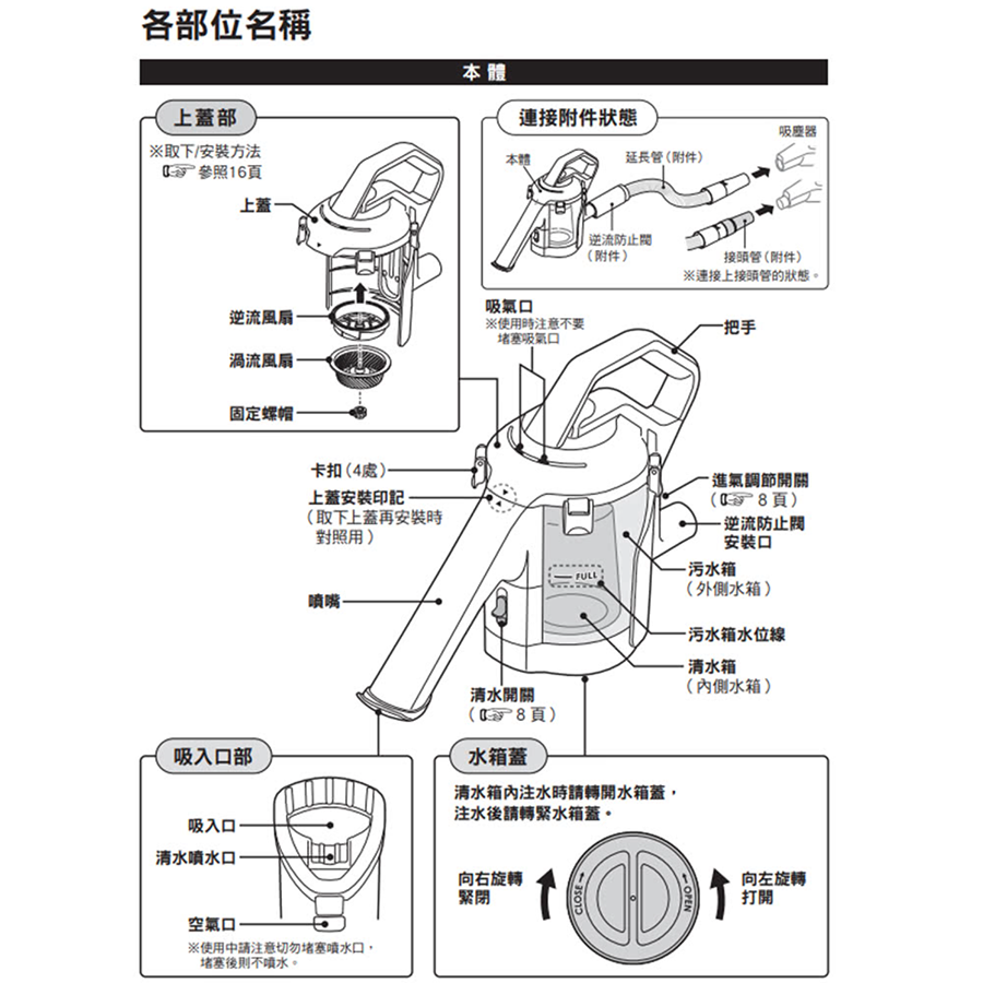 ◆ 專利防止逆流閥:防止因水洗掃除器傾倒,汙水逆流向吸塵器