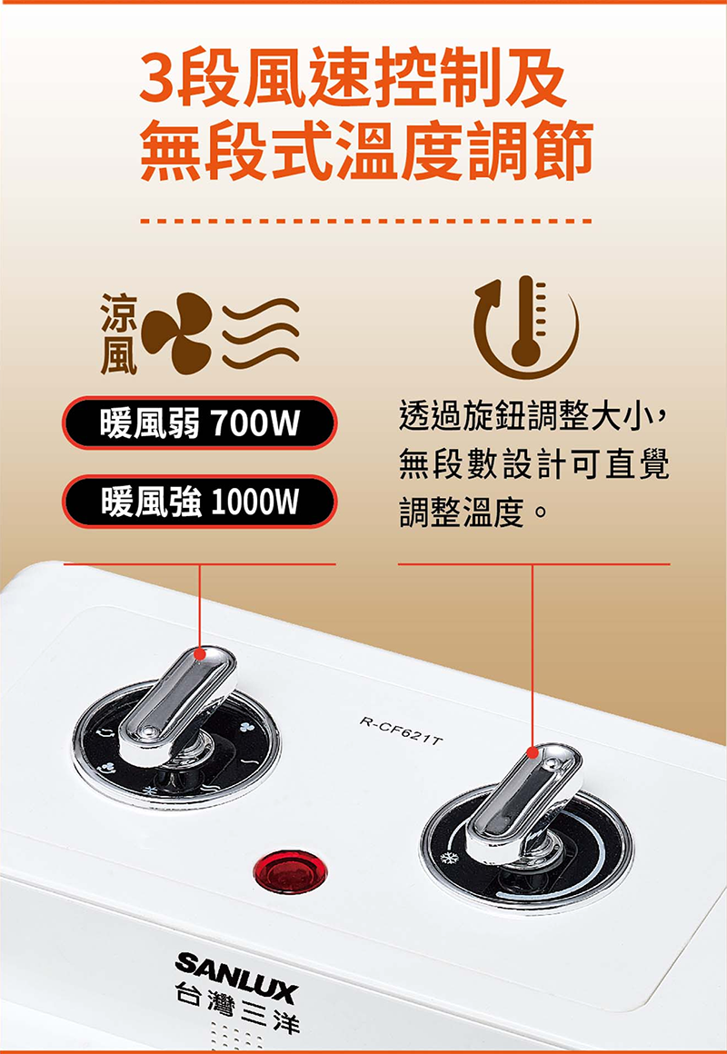 2. 兩檔暖風+一檔冷風