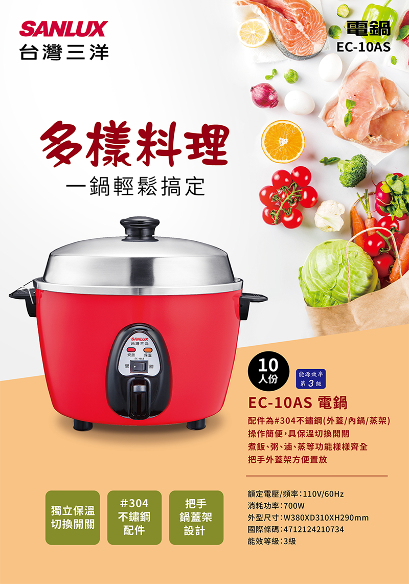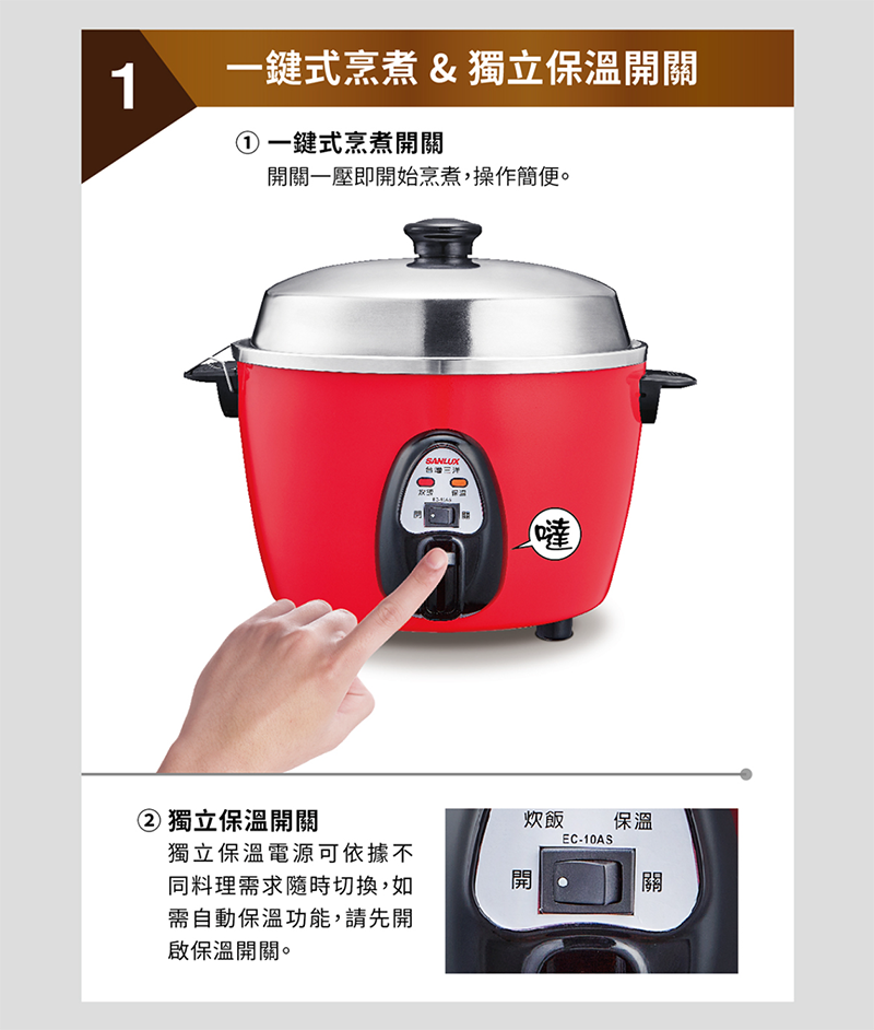 ‧ 操作簡便,具保溫切換開關