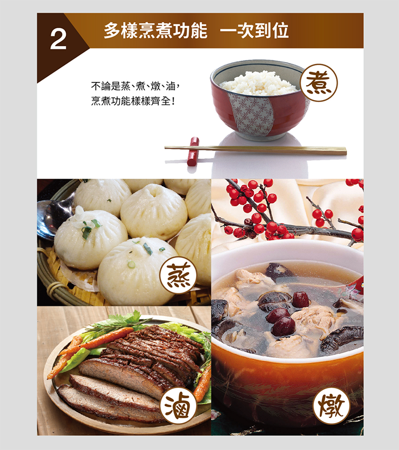 ‧ 煮飯、粥、滷、蒸等功能樣樣齊全