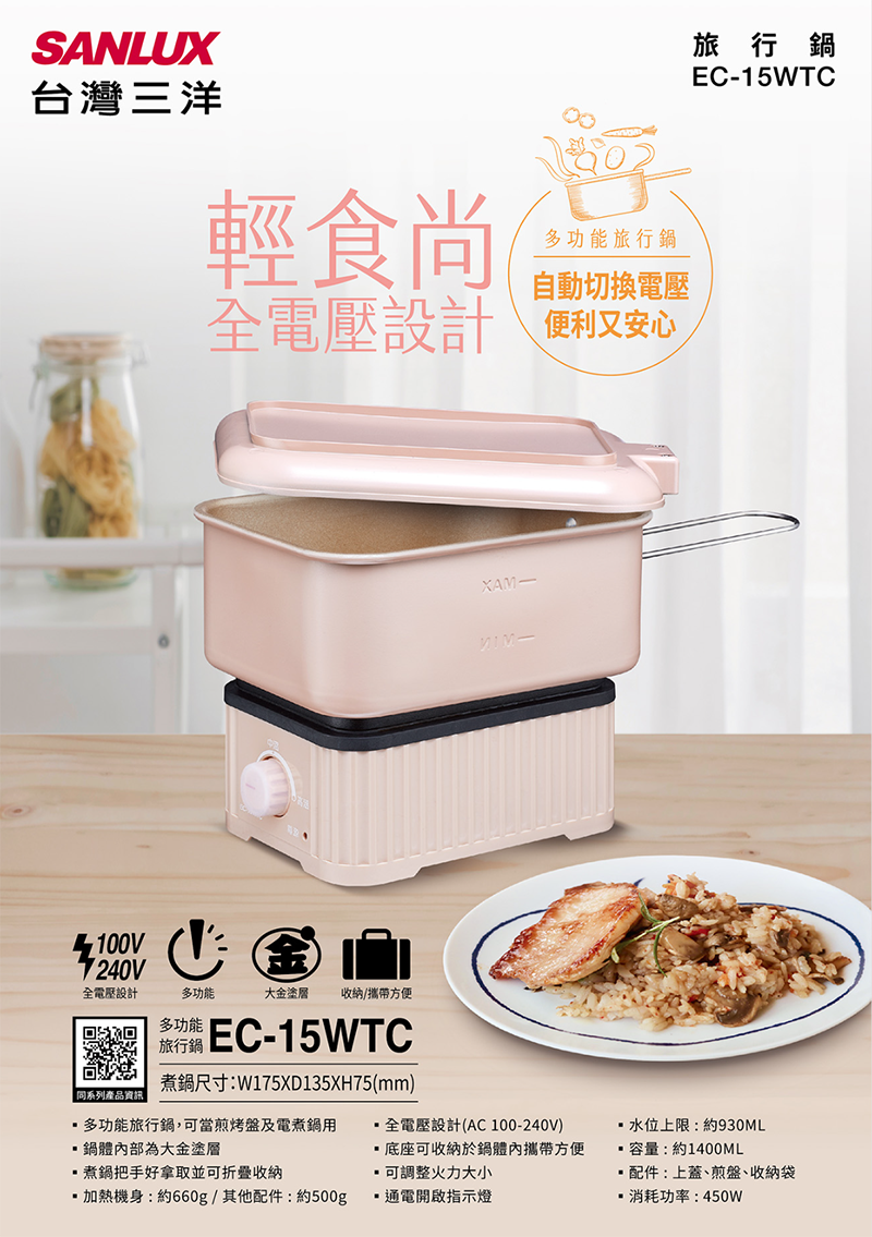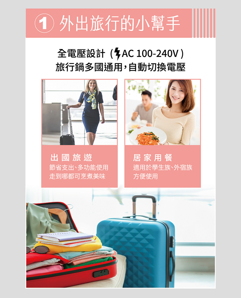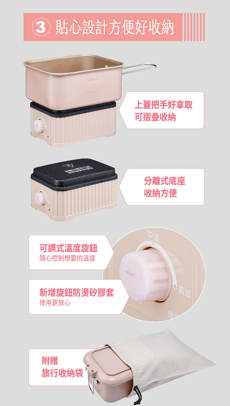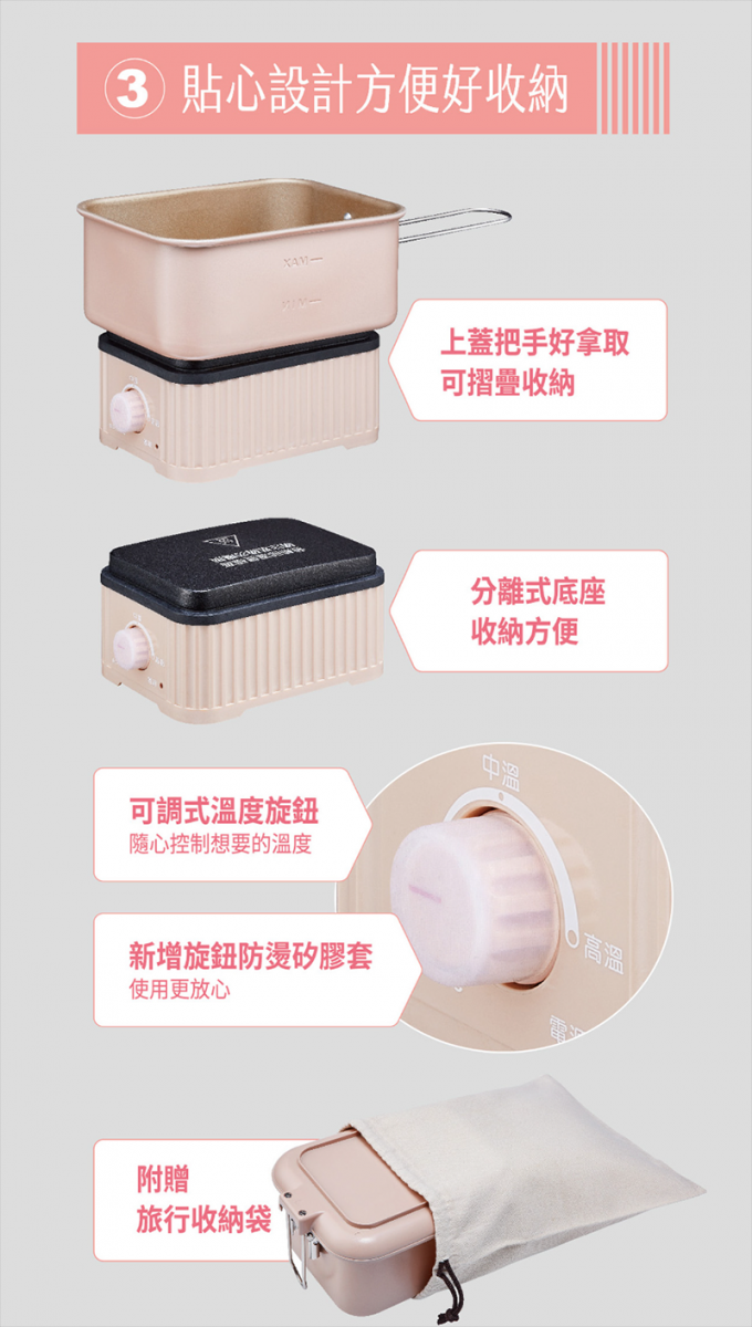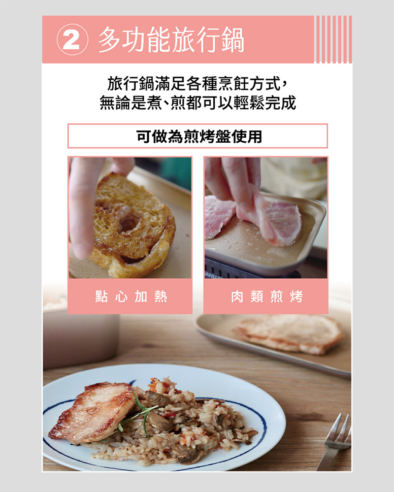 ‧ 多功能旅行鍋,可當煎烤盤及電煮鍋用