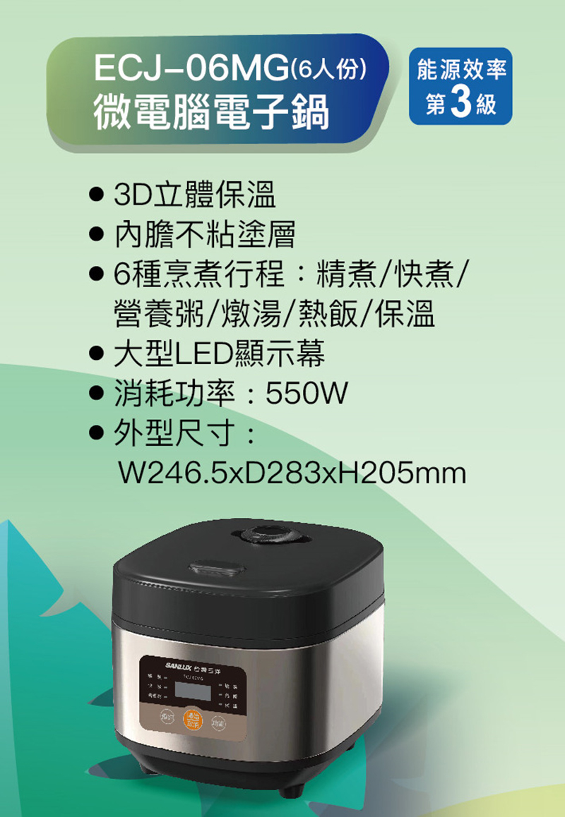 ‧ 6種烹煮行程:精煮/快煮/營養粥/燉湯/熱飯/保溫