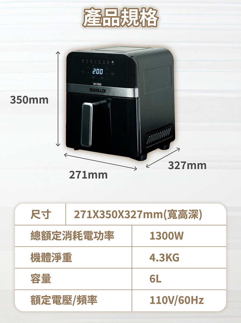 ‧ 360度氣炸循環,食材均勻受熱