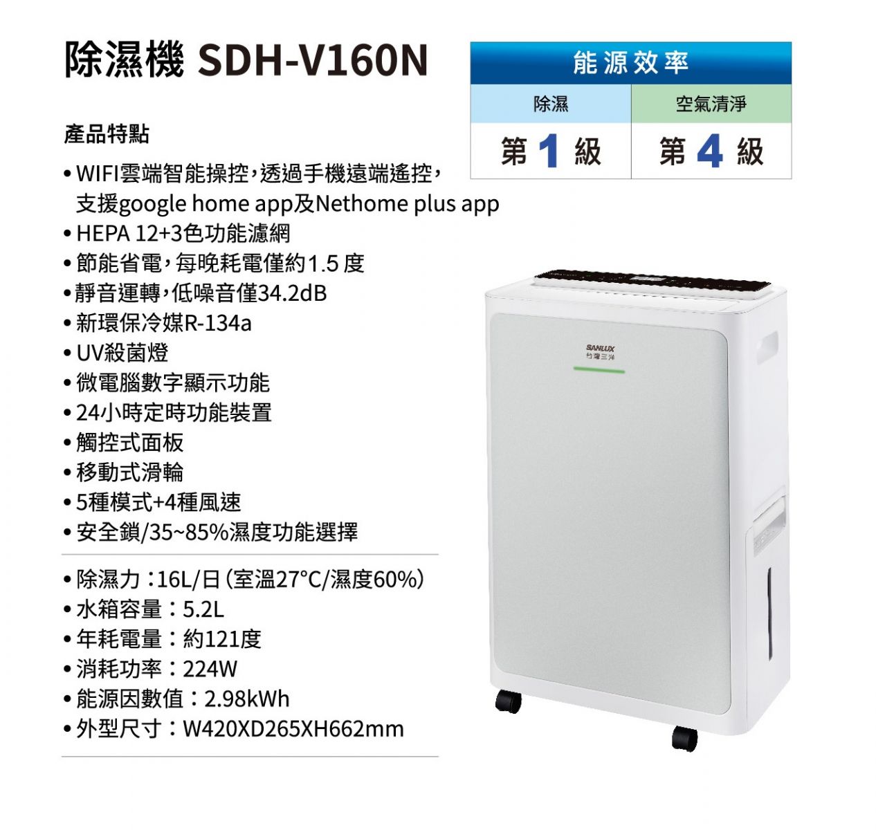 | 能源因數值 | 2.98 L/kWh | |