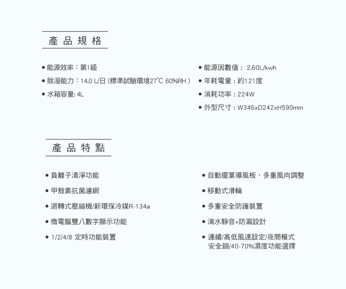 | 外型尺寸(mm) | W346 x D242x H590 mm | |