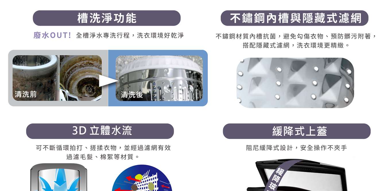 | 洗衣行程 | 標準、柔洗、浸洗、高級衣、強洗、厚洗、快洗、自訂 |