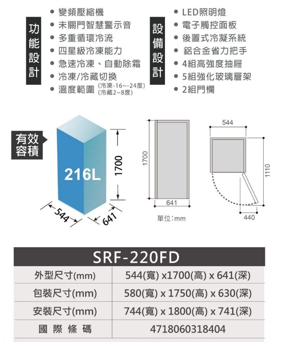 | 變頻冷凍櫃 SRF-220FD | |