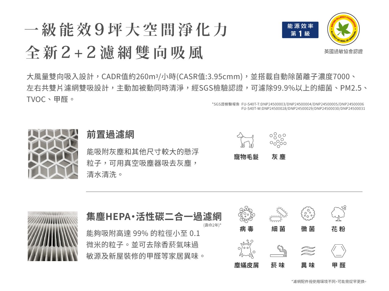 | 集塵.脫臭2合1濾網(型號,壽命) | 〇,FZ-S40S2E(2件)(壽命2年)*濾網配件視使用環境不同可能需提早更換 |