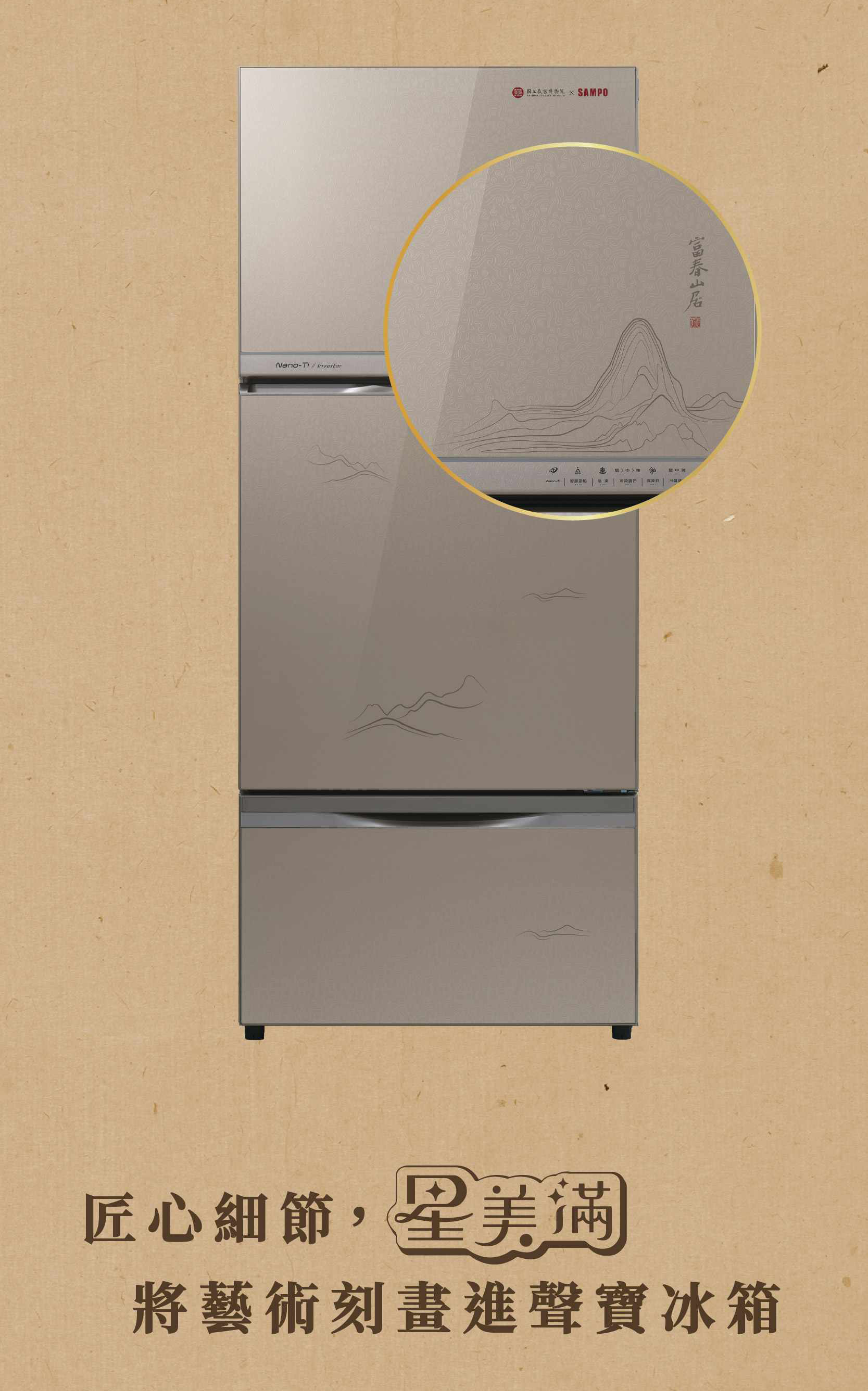 首頁>♦ 冰箱 | 冷凍櫃>找品牌>SAMPO 聲寶聲寶SAMPO|故宮聯名款〈富春山居圖〉605L三門玻璃變頻冰箱SR-C61GDV(NPM1)(含運送+拆箱定位+舊機回收 *樓層費另計)