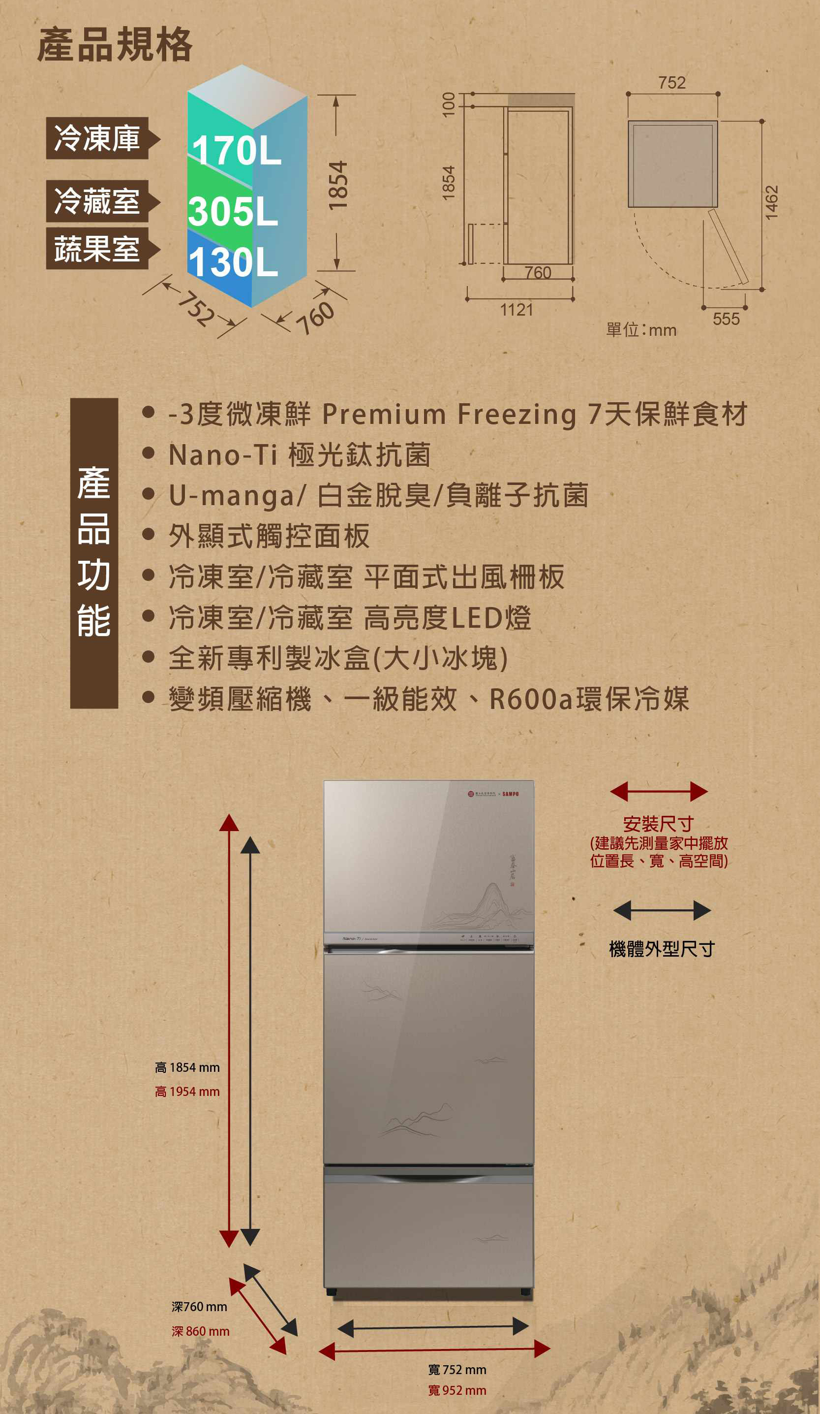 請在訂購前審慎衡量確定符合需求,與再三確定商品尺寸規格符合空間位置,若非商品機子問題(經原廠判斷)而退換貨,尚豪將收取整新費+運費工資。