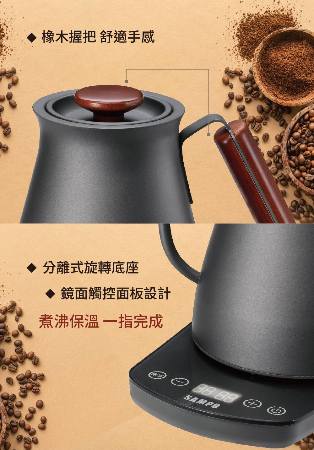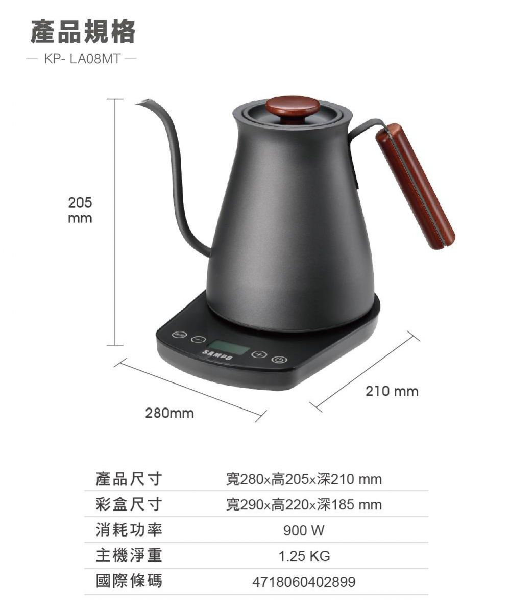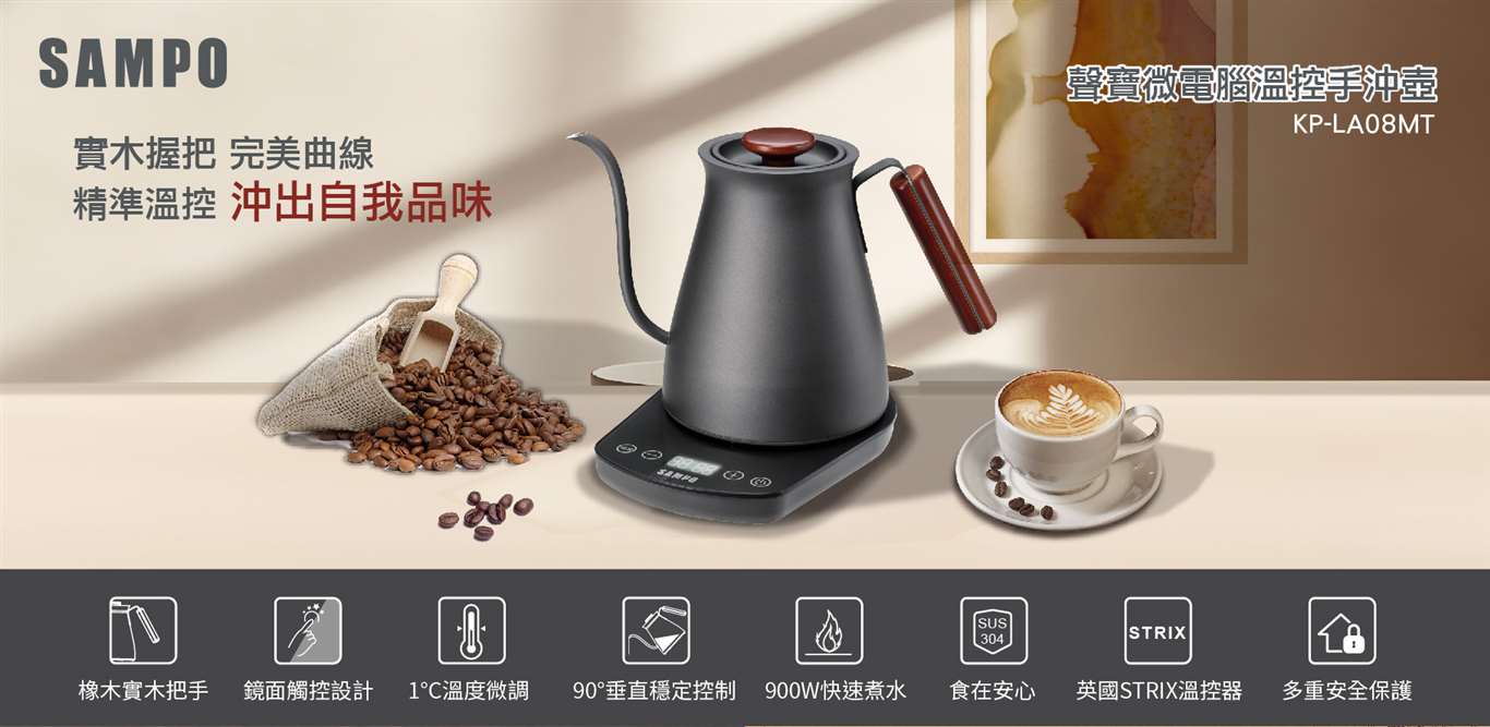 聲寶SAMPO|0.8L溫控微電腦手沖壺KP-LA08MT