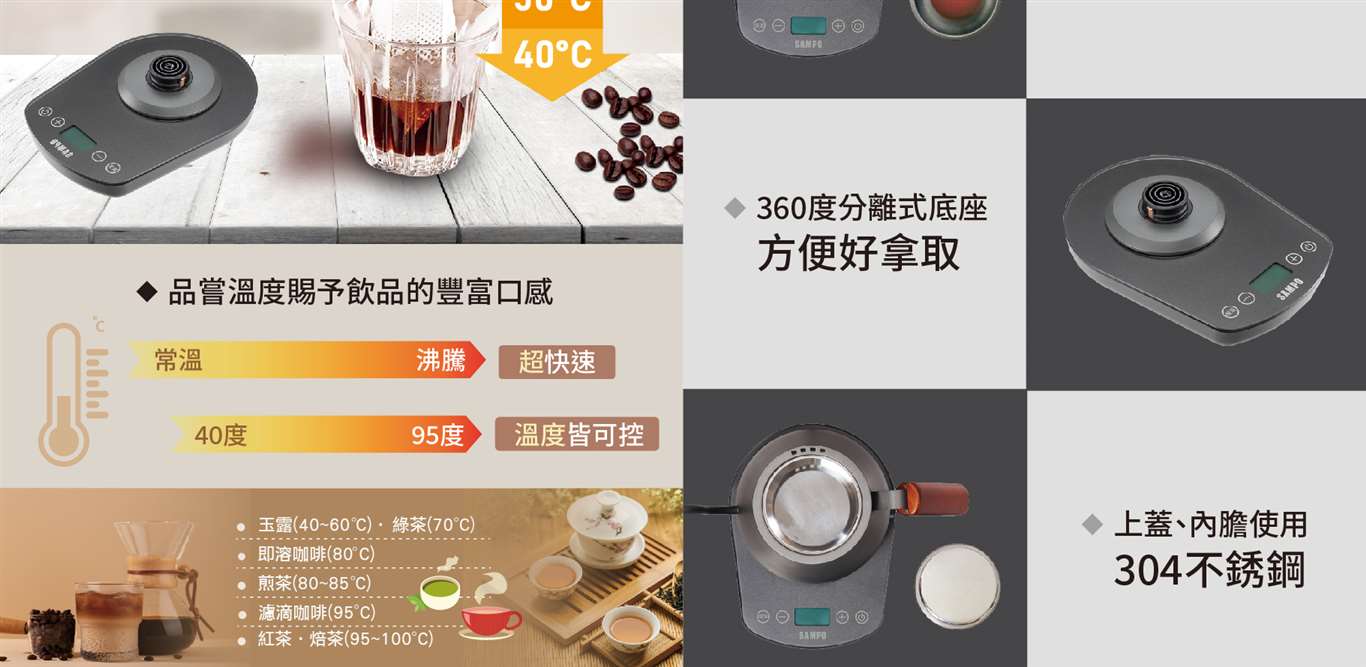 首頁>♦ 廚房家電>開飲機 | 熱水瓶 | 快煮壺聲寶SAMPO|0.8L溫控微電腦手沖壺KP-LA08MT