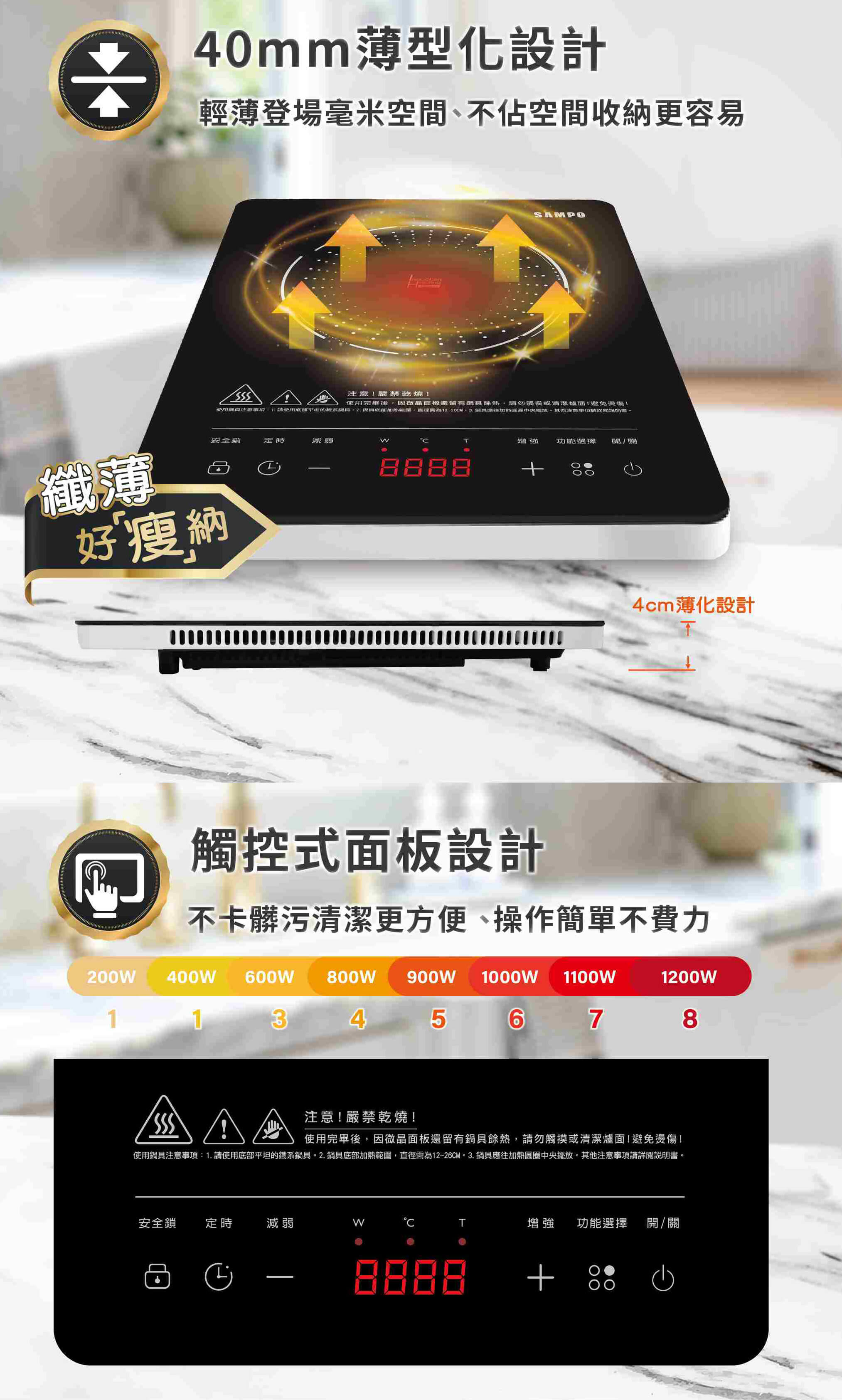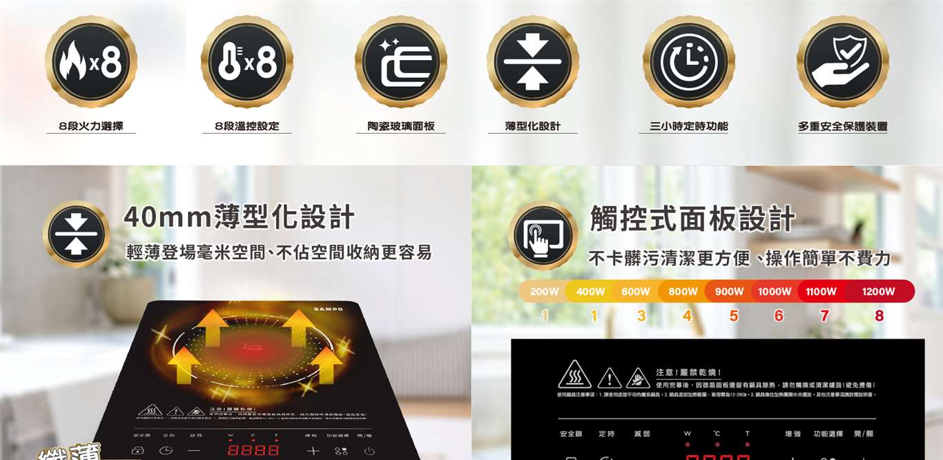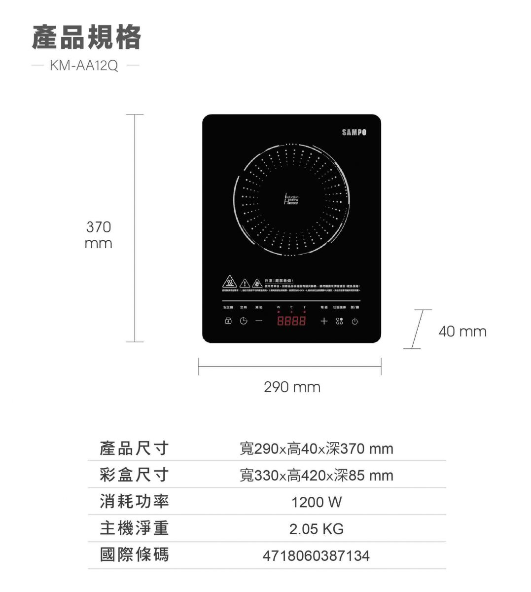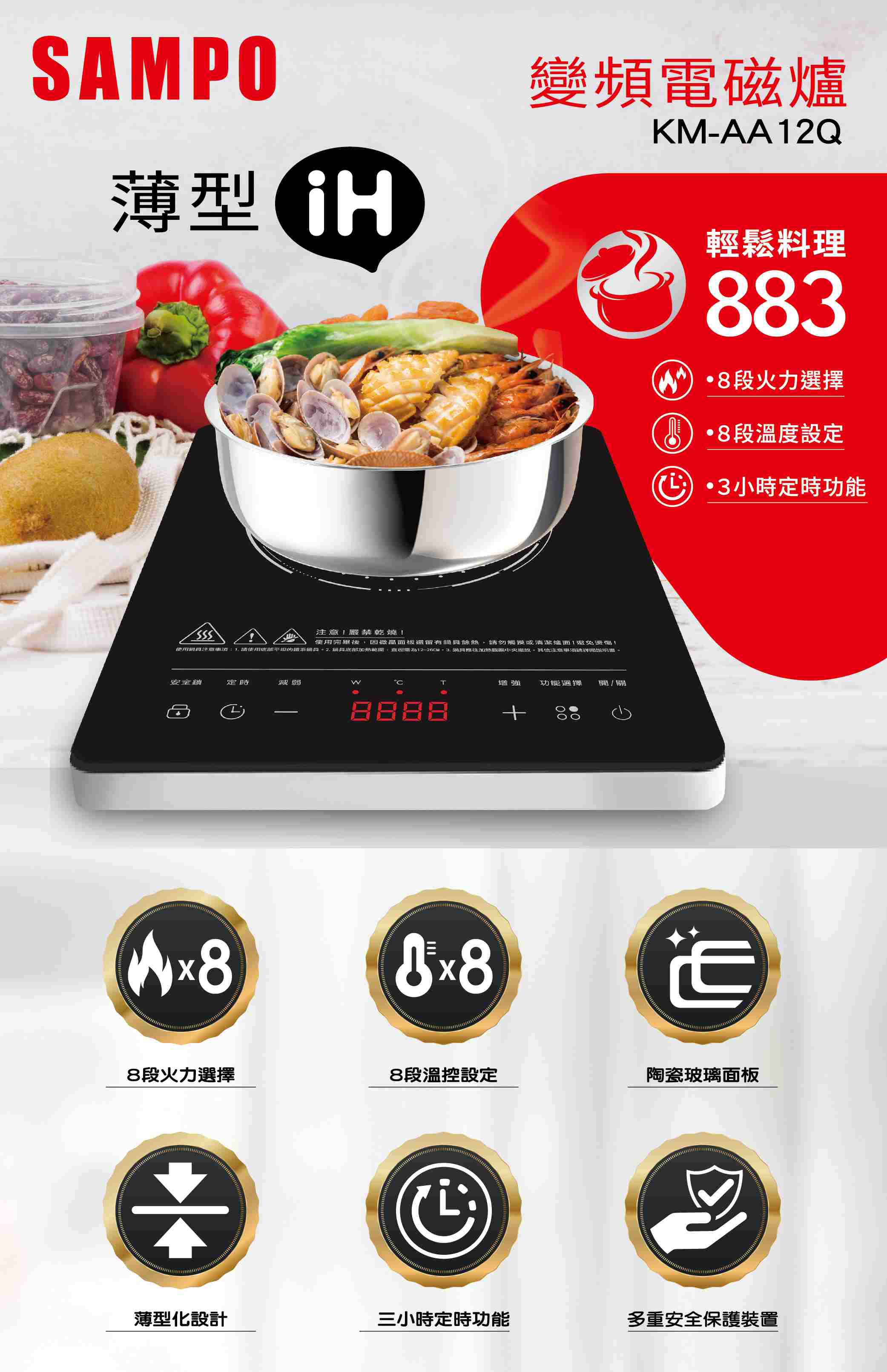 聲寶SAMPO|微電腦薄型IH變頻電磁爐KM-AA12Q